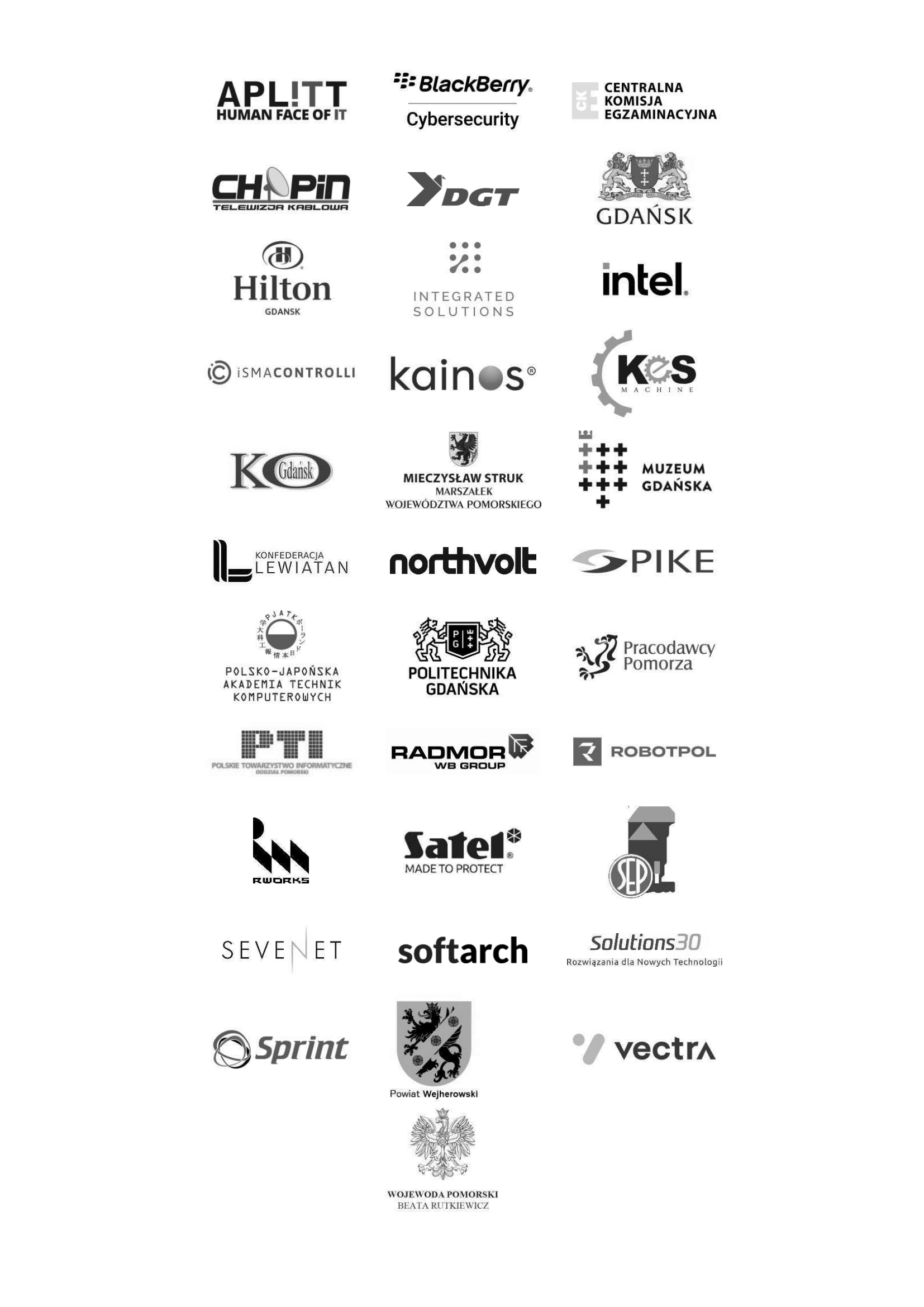 APLIT | BLACKBERRY | CENTRALNA KOMISJA EGZAMINACYJNA | CHOPIN TELEWIZJA KABLOWA | DGT | MIASTO GDAŃSK | HILTON | INTEGRATED SOLUTIONS | INTEL | ISMACONTROLLI | KAINOS | KES MACHINE | KURATORIUM OŚWIATY W GDAŃSKU | MARSZAŁEK WOJEWÓDZTWA POMORSKIEGO MIECZYSŁAW STRUK | MUZEUM GDAŃSKA | LEWIATAN | NORTHVOLT | POLSKA IZBA KOMUNIKACJE ELEKTRONICZNEJ | POLSKO-JAPOŃSKA AKADEMIA TECHNIK KOMPUTEROWYCH | POLITECHNIKA GDAŃSKA | PRACODAWCY POMORZA | POLSKIE TOWARZYSTWO INFORMATYCZNE ODDZIAŁ POMORSKI | RADMOR | ROBOTPOL | RWORKS | SATEL | STOWARZYSZENIE ELEKTRYKÓW POLSKICH ODDZIAŁ GDAŃSKI | SEVENET | SOFTARCH | SOLUTIONS30 | SPRINT | STAROSTA POWIATU WEJHEROWSKIEGO | VECTRA | WOJEWODA POMORSKI BEATA RUTKIEWICZ